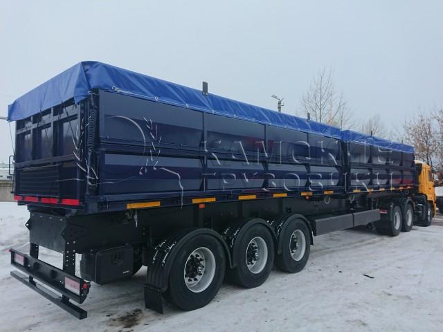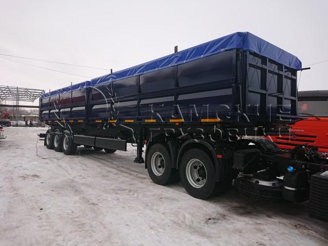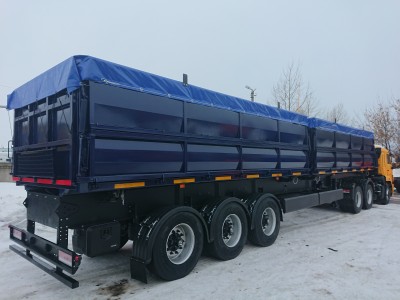 Самосваьная платформа состит из 2-х самостоятельных кузовов 25+25 куб . Между кузовами установлены съемные перегородки.Основание конструкции усиленное, выполнено из конструкционной стали 09Г2С, обработано антикоррозийным материалом, согласно требованиям завода изготовителя. Пол надстройки стальной. Надстройка представляет собой стальной каркас, боковые нижние борта откидные с нижней навеской, боковые верхние борта с верхней навеской или глухие, передняя и задние части глухие.