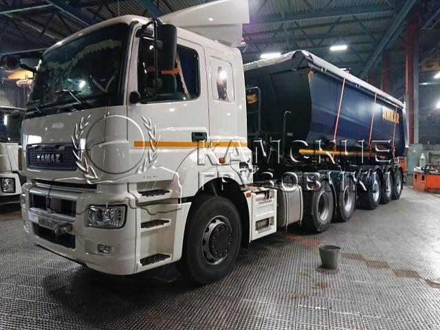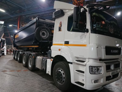 Особенности комплектации автомобиля | объем 30 куб.м., кузов овального сечения, конической формы, сталь 09Г2С, толщина днища 8 мм, толщина панелей бортов 5 мм, высота ССУ 1270 мм, гидроцилиндр "Hyva", оси CEYLAN, с подьемной осью на пневматической подвеске, EBS, цвет темно-синий, резина 385/65R22,5. |