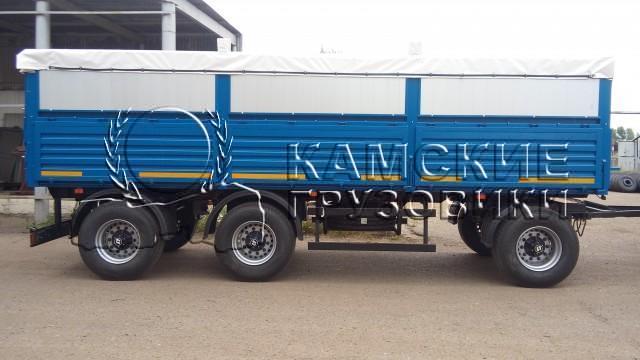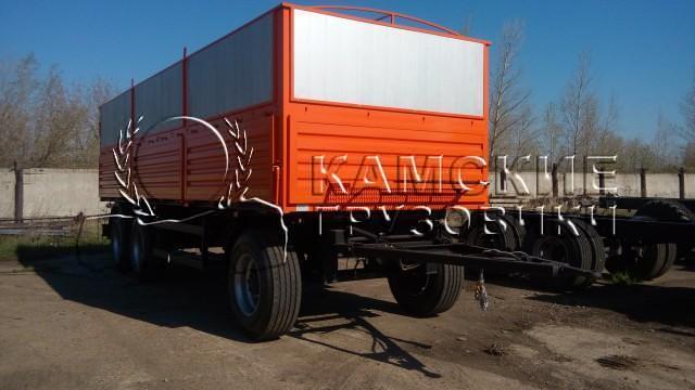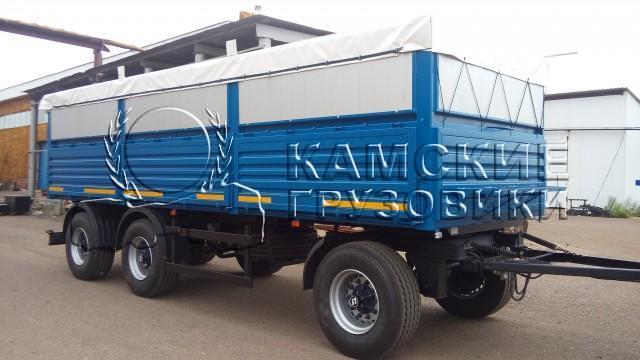 Прицеп может комплектоваться пологом с наматывающим устройством, задними распашными воротами, люком под зерномет.