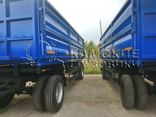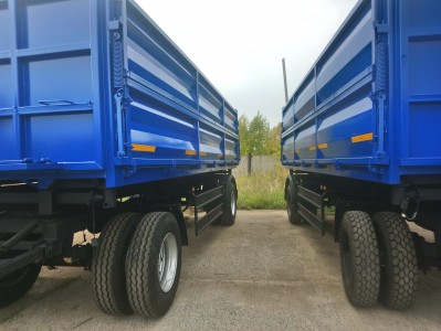 Самосвальная платформа разгрузка на две боковые стороны 50град., ручное запирание бортов, борта подпружинены, Боковые борта: верхние боковые борта с верхней навеской, нижние боковые борта с нижней навеской. Задняя часть: глухая, возможность установки распашных ворот, люка под зерномет 450мм. Гидросистема: Две опорные балки, с двумя гидроцилиндрами. Цвет платформы по выбору.