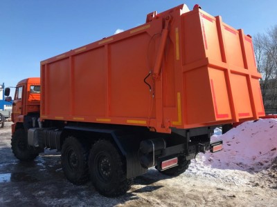 Выгрузка осуществляется опрокидыванием кузова и толкающей плитой.