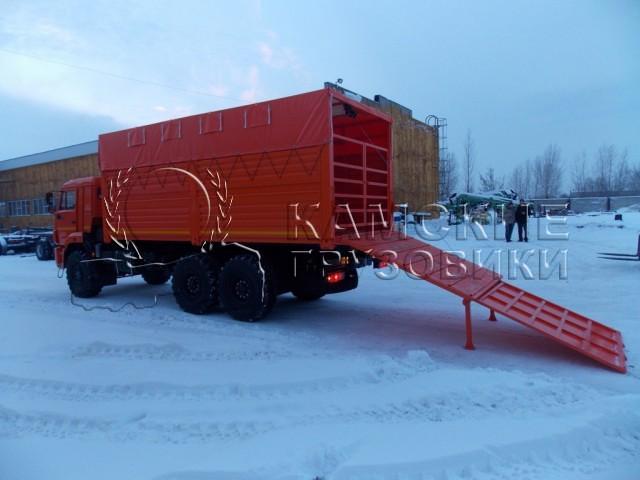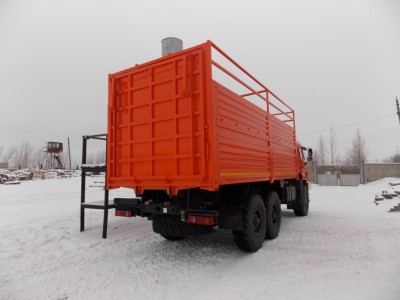 Основание конструкции усиленное, выполнено из конструкционной стали 09ГС, обработано антикоррозийным материалом, согласно требованиям завода изготовителя. Пол надстройки выполнен из рифленого листа 3мм, поперек пола расположены противоскользящие ребра из гнутого швеллера через каждые 400мм. Надстройка представляет собой стальной каркас, зашитый панелями специального гнутого профиля. Верхняя часть надстройки в летнее время открытое, сварено из профильной трубы, в зимнее время закрывается накидным пологом с передними, боковыми клапанами для вентиляции кузова, в количестве 2ед. на передней стенке, 6ед. с каждой стороны по бокам. С внутренней стороны кузова, , выполнены решетчатые перегородки 2ед. с калиткой из крашенного стального профиля, разделяющее внутреннее пространства. С наружной стороны надстройка окрашивается в цвет синий, либо оранжевый, либо иного цвета по желанию Заказчика, лакокрасочными материалами повышенной коррозийной стойкостью. Надстройка оборудована передними, задними и боковыми габаритными фонарями (питание от электросети автомобиля). Монтаж надстройки на шасси, согласно требованию завода изготовителя шасси. По периметру нанесена обязательная маркировка светоотражающая полоса. Установлены задние металлические крылья с резиновыми брызговиками.