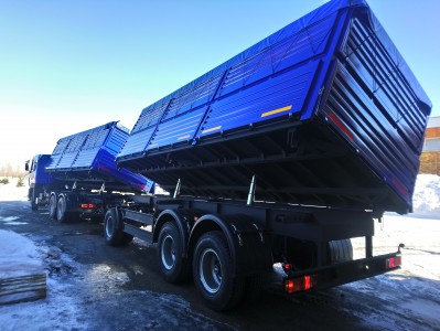 Самосвальная платформа разгрузка на две боковые стороны 50град, ручное запирание бортов, верхний борт глухой , нижние борта с верхней навеской Гидросистема: три опоры, с двумя гидроцилиндрами. Цвет платформы на выбор.